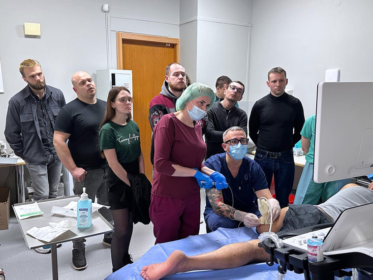 During the course, we discussed the diagnosis of pain syndromes, psychological methods of pain treatment, and medication-based correction. We examined interventions on the peripheral nervous system and focused in more detail on regional anesthesia in the treatment of nociceptive and neuropathic pain. We shared experience in reconstructive surgery for servicemen using different methods of defect closure. Attention was given to interventions on the central nervous system. We also discussed minimally invasive methods of treating phantom limb pain. In addition, colleagues had the opportunity to observe our doctors at work in the operating room.